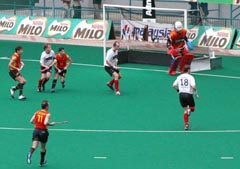In der 51. Minute kam das deutsche Team zu seiner ersten Strafecke. Kapitän Florian Kunz Schlenzer wurde noch leicht abgefälscht, so dass er – unhaltbar für den spanischen Torhüter – links unten zum 2:4 (51.) im Tor einschlug. Zum wertvollsten Spieler des Tages wurde dann Matthias Witthaus. Der ebenfalls zur Zeit in Spanien aktive Krefelder (für Atletic Terrassa) gab der spanischen Abwehr einige Rätsel auf. Vier der fünf Strafecken, die Deutschland alle in der zweiten Hälfte hatte (Spanien hatte nur zwei dieser Standardsituation in Halbzeit eins), holte Witthaus heraus. „Ich hätte vielleicht selbst auch noch ein Tor machen müssen“, so der 21-Jährige später bescheiden. |